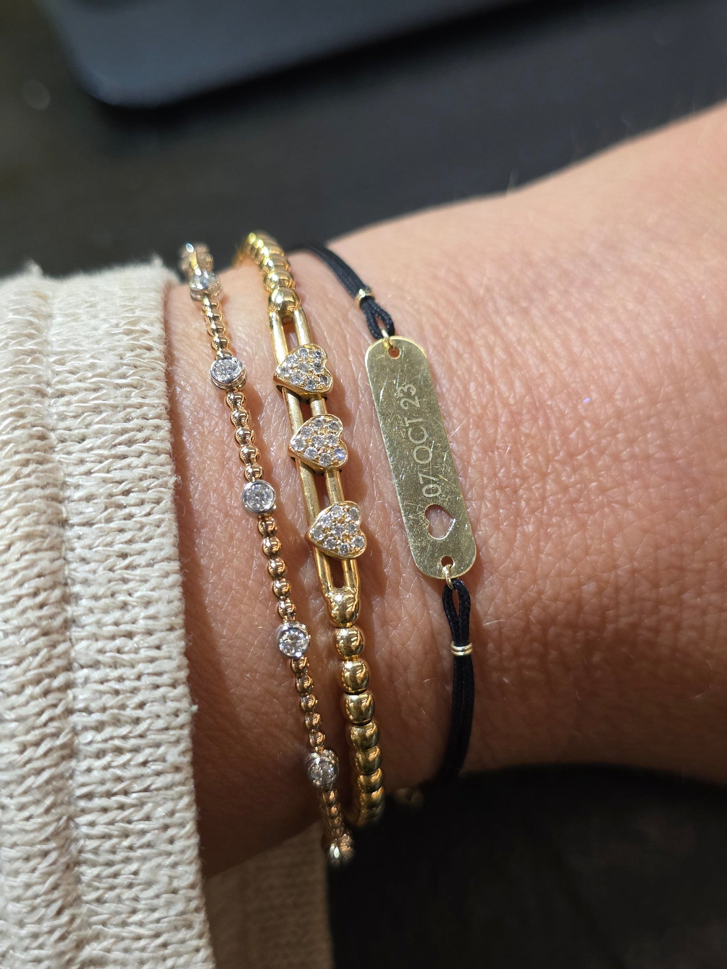 With 7 white diamonds on an 18KT Rose Gold bead bangle, this will be your go-to jewelry for a delicate, yet luxurious look.
